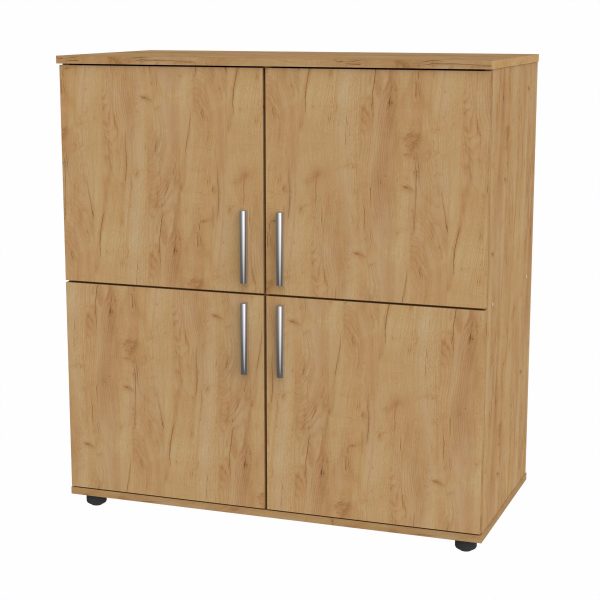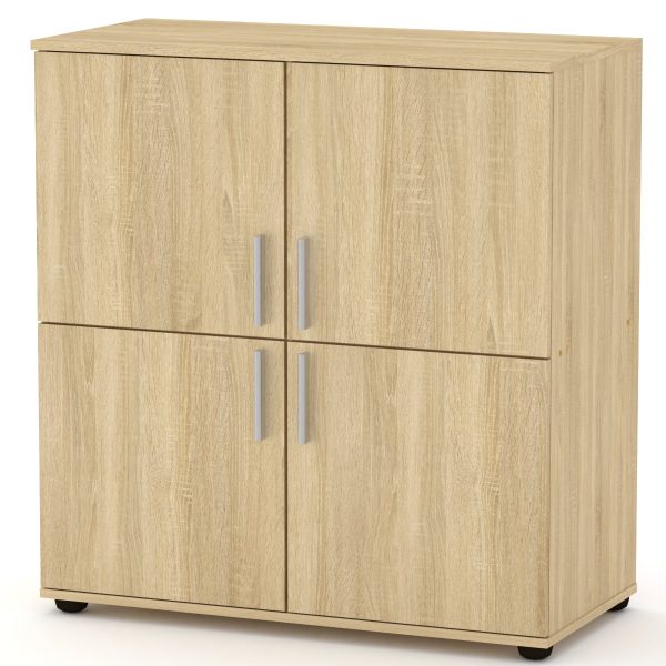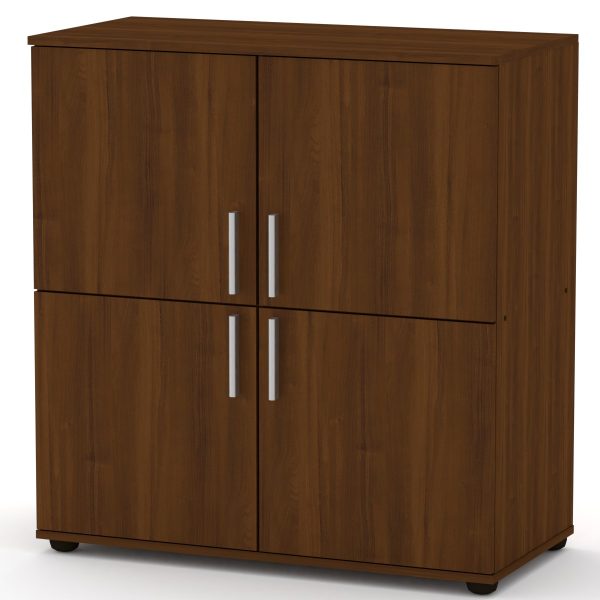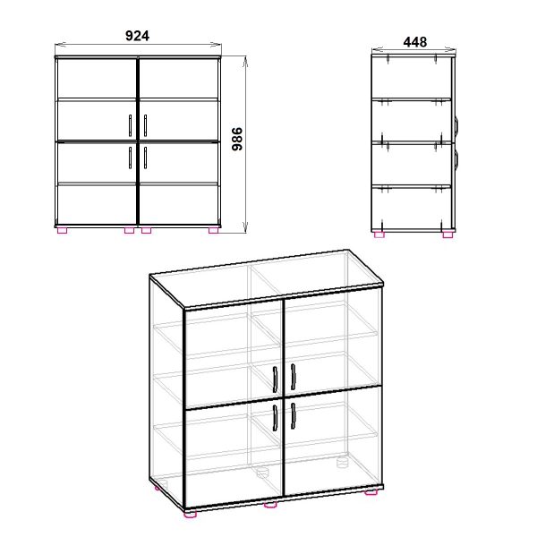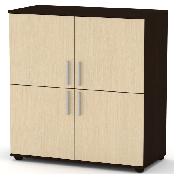 Комод 4Д от производителя «Компанит» – это распашной комод из ламинированного ДСП, имеющий размеры 924 мм (ширина) х 986 мм (высота) х 448 мм (глубина). В нем четыре распашные дверки, а материал корпуса – ламинированное ДСП толщиной 16 мм, с кромкой из ПВХ. Комод доступен в различных расцветках, таких как Бук, Венге, Дуб Сонома и других.