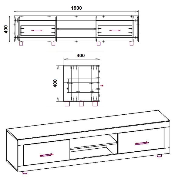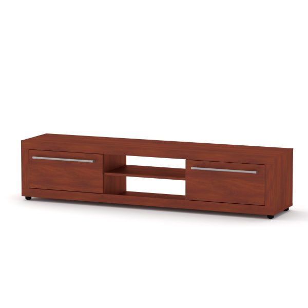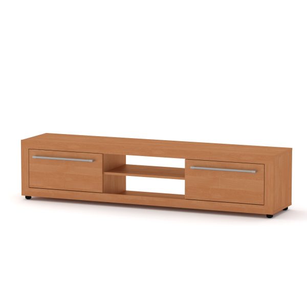 Модель має широку стільницю, два висувні ящики на роликових напрямних та дві відкриті полички для зручного зберігання речей та розміщення обладнання. Тумба встановлена на невеликих ніжках або коліщатках, що, за деякими даними, робить її переміщення зручнішим.
