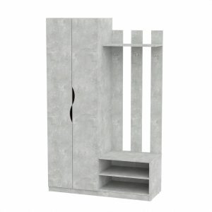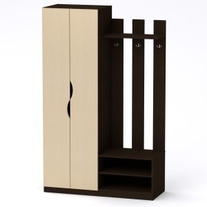 Передпокій “Єва” від виробника Компаніт – це стильний та функціональний комплект меблів для передпокою, виготовлений з ламінованої ДСП, що поєднує високу якість за доступною ціною. Він має габаритні розміри 1003 мм (ширина) х 1950 мм (висота) х 380 мм (глибина) та включає вішалку з трьома гачками, шафки, полички та дзеркало.
