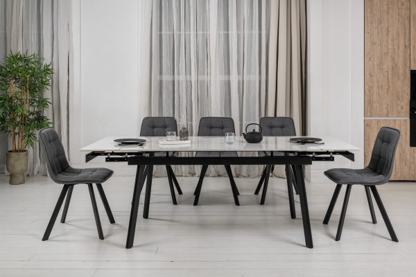 Чорна металева основа надає стільцю сучасного вигляду та забезпечує його стійкість і міцність. Контраст між оббивкою айворі та чорними ніжками створює стильний і збалансований образ.