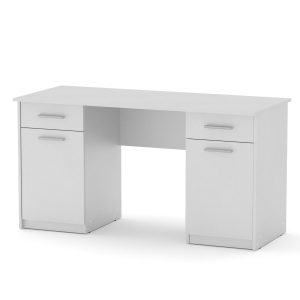 Письмовий стіл «Декан» від фабрики «Компаніт» — це бюджетна модель, виготовлена з ламінованої ДСП товщиною 16 мм, з крайкою з ПВХ (0,5 мм). Він має простору стільницю, тумбу з трьома висувними ящиками та відкритою нішею для зберігання речей. Габарити столу стандартні: ширина — 1100 мм, висота — 736 мм, глибина — 600 мм.
