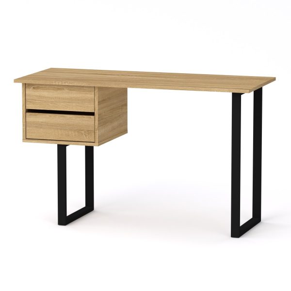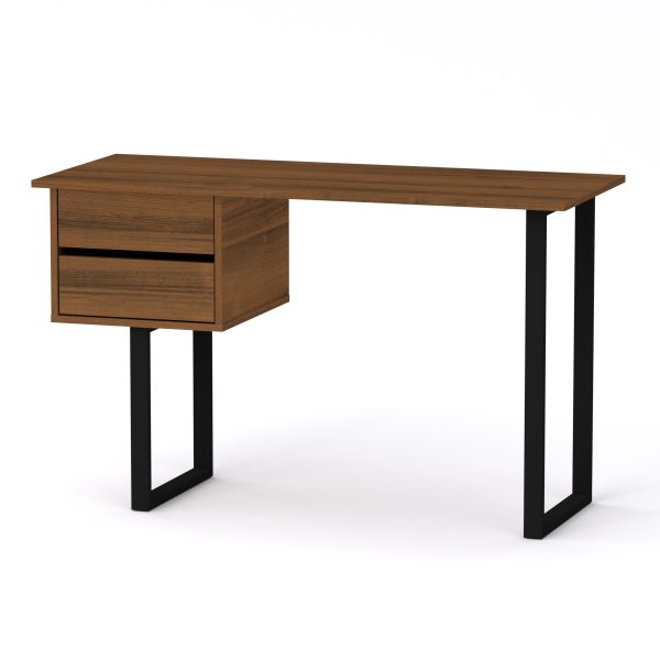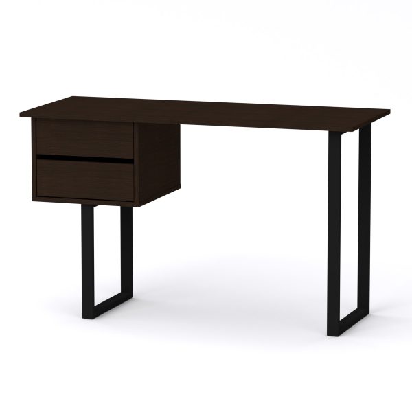 Письмовий стіл Лофт-3 від виробника Компаніт – це модель з ламінованого ДСП (16 мм), яка має металеві ніжки та кромку ПВХ 0,5 мм. Його габарити складають 1200 мм (довжина) х 500 мм (ширина) х 728 мм (висота). Стіл поставляється розібраним у фабричній упаковці з усією необхідною фурнітурою та інструкцією для збирання, а отвори для збирання вже просвердлені.