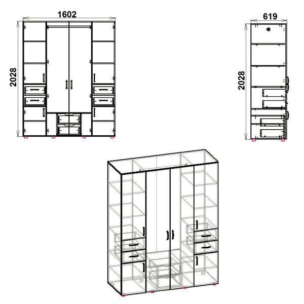 Шафа-20 від виробника Компаніт — це велика, містка тридверна шафа-купе (або розпашна) з ламінованого ДСП, яка ідеально підходить для спальні, передпокою чи офісу. Вона має полиці, штангу для вішалок та шухляди. Основні розміри: 2028х1602х619 мм, вага — приблизно 151-159 кг, доступна у 6+ кольорах.